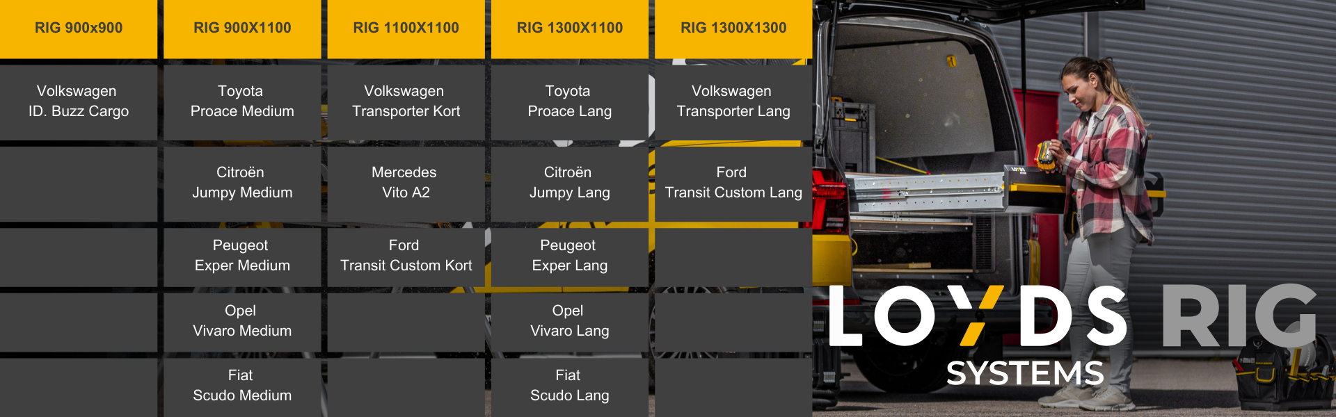 Varebillinnredning spesielt utviklet for tømrere og andre håndverkere med mye stort verktøy og utstyr. RIG gir deg muligheten til å frakte store gjenstander som inngangsdører og gipsplater, uten at du må tømme bilen for verktøy og utstyr. RIG er en fleksibel løsning som passer de ulike arbeidsoppgavene du som håndverker har.