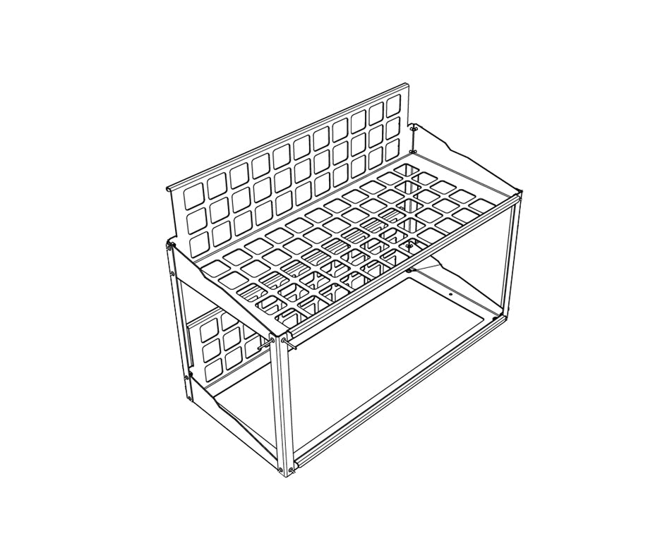 Top Rack kabelstativ. Spesialdesignet stativ for elektrikere til oppbevaring av 8 stk 30x30cm kabelesker. Passer til små varebiler.