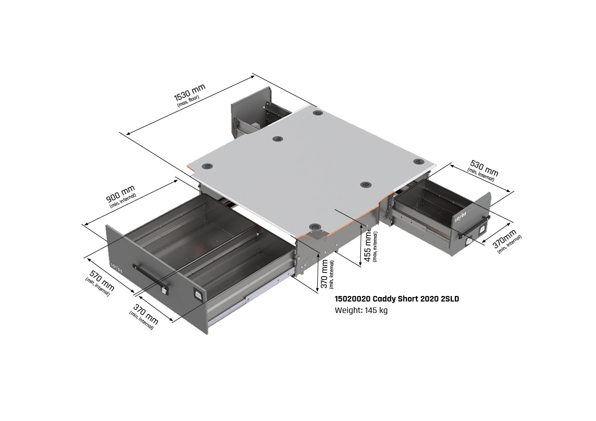 Med Smartfloor får du ekstra høye skuffer som rommer hele 0,6m3 og har en nyttelast på 450 kg. Du har alltid full oversikt over alt av verktøy og materiell som befinner seg i de store skuffene.